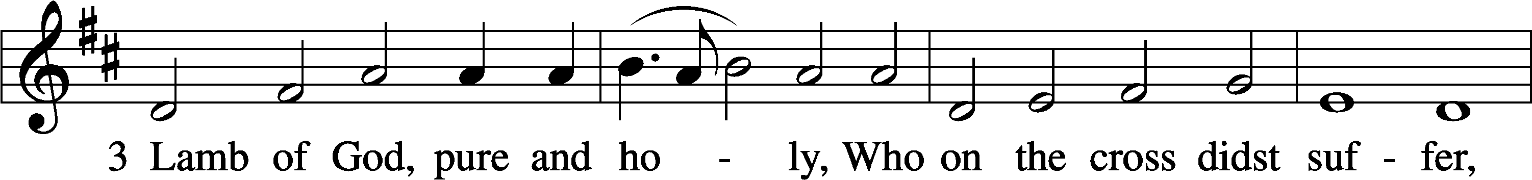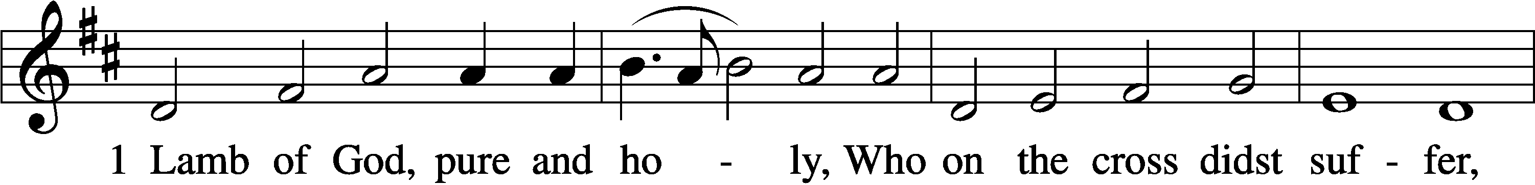 P Our Lord Jesus Christ, on the night when He was betrayed, took bread, and when He had given thanks, He broke it and gave it to the disciples and said: “Take, eat; this is My T body, which is given for you. This do in remembrance of Me.”