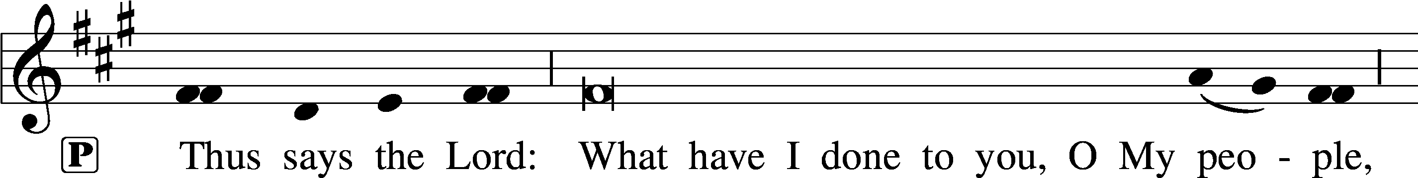 The following Reproaches are the words of the Lord against His people, the Church, to which the congregation replies with a plea for mercy.