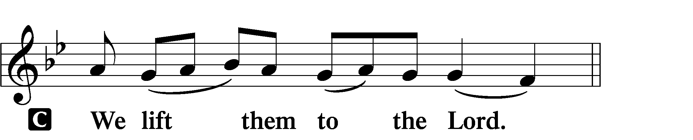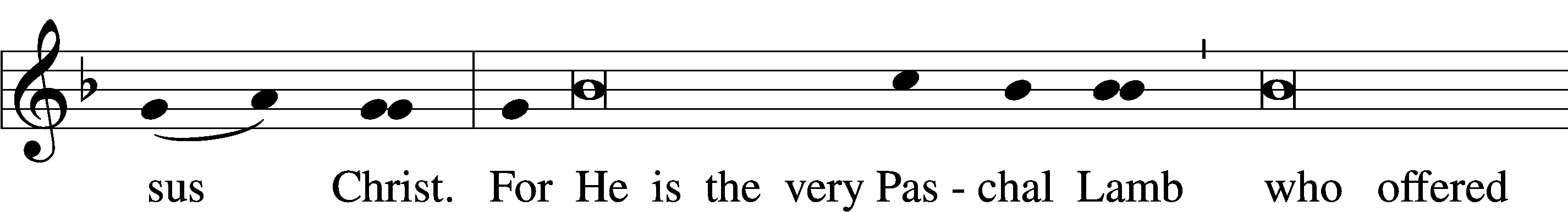 P Our Lord Jesus Christ, on the night when He was betrayed, took bread, and when He had given thanks, He broke it and gave it to the disciples and said: “Take, eat; this is My T body, which is given for you. This do in remembrance of Me.”