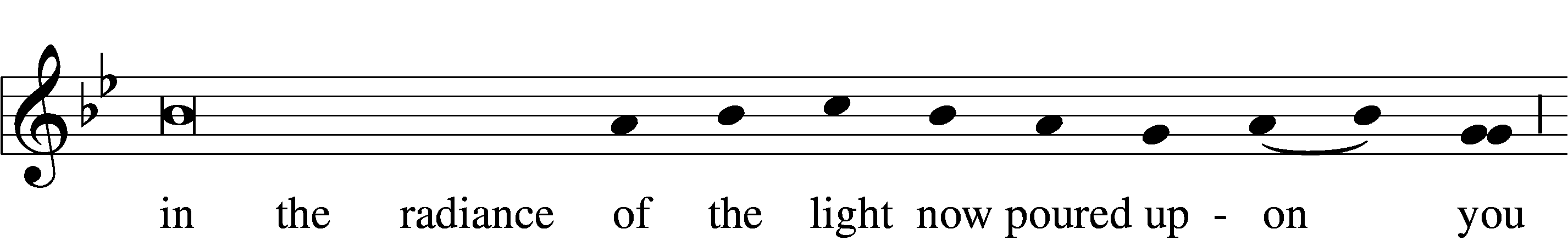 After all have reached their places, the candle bearer lifts the candle high and chants the third time: