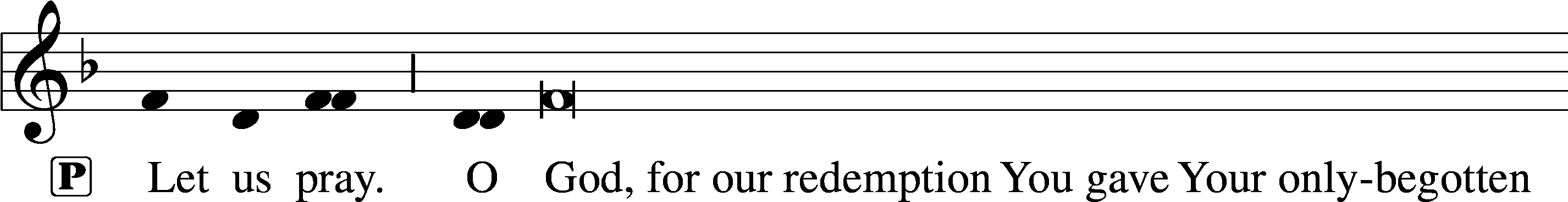 O God, You once delivered Your people Israel from bondage under Pharaoh and led them by a pillar of cloud and fire through the sea to safety. Grant that we may so follow Christ that through the waters of Baptism we may daily die and rise with Him and walk in safety through the wilderness of this life until we see Your salvation; through Jesus Christ, our Lord.